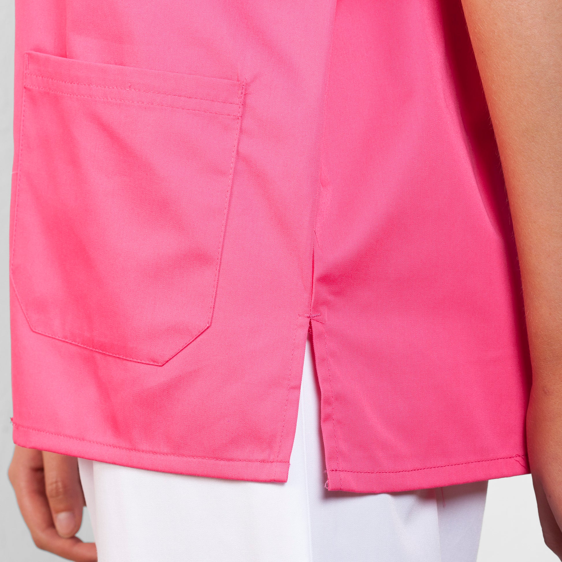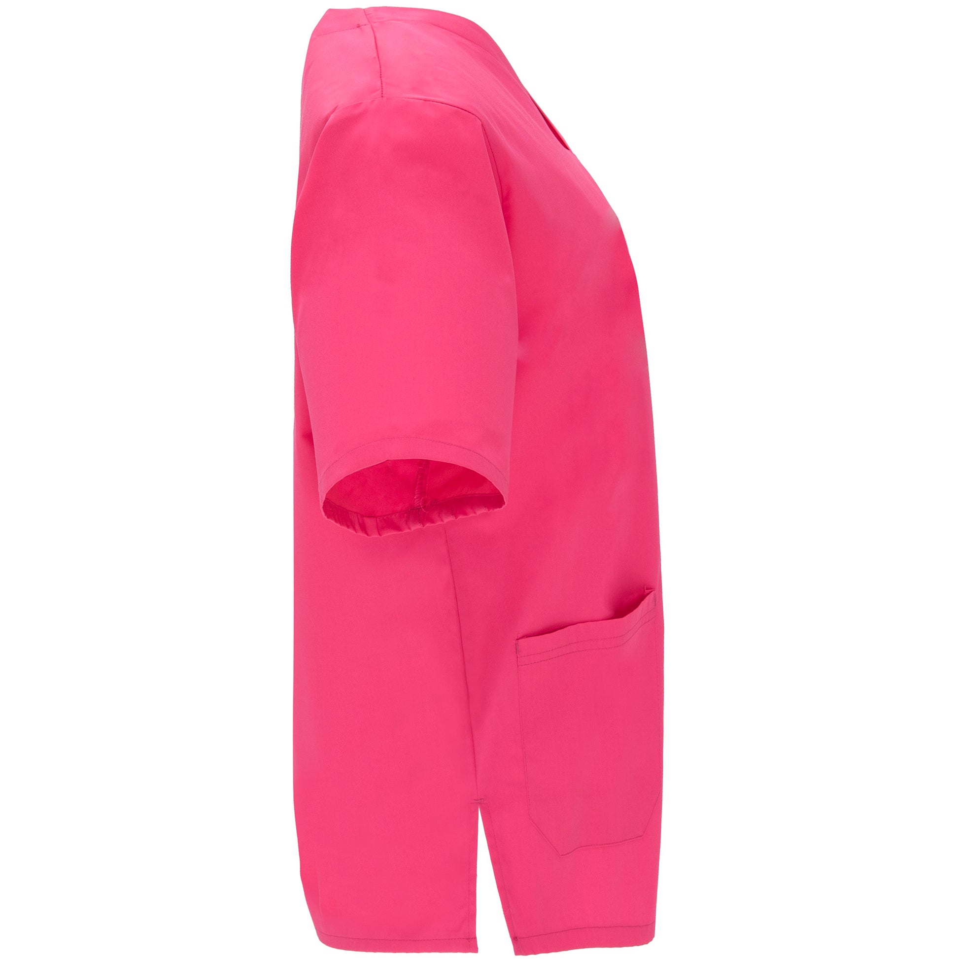 Casaca de servicios unisex de manga corta y escote de pico cruzado. Un bolsillo en pecho y dos bolsillos laterales. Aperturas laterales.