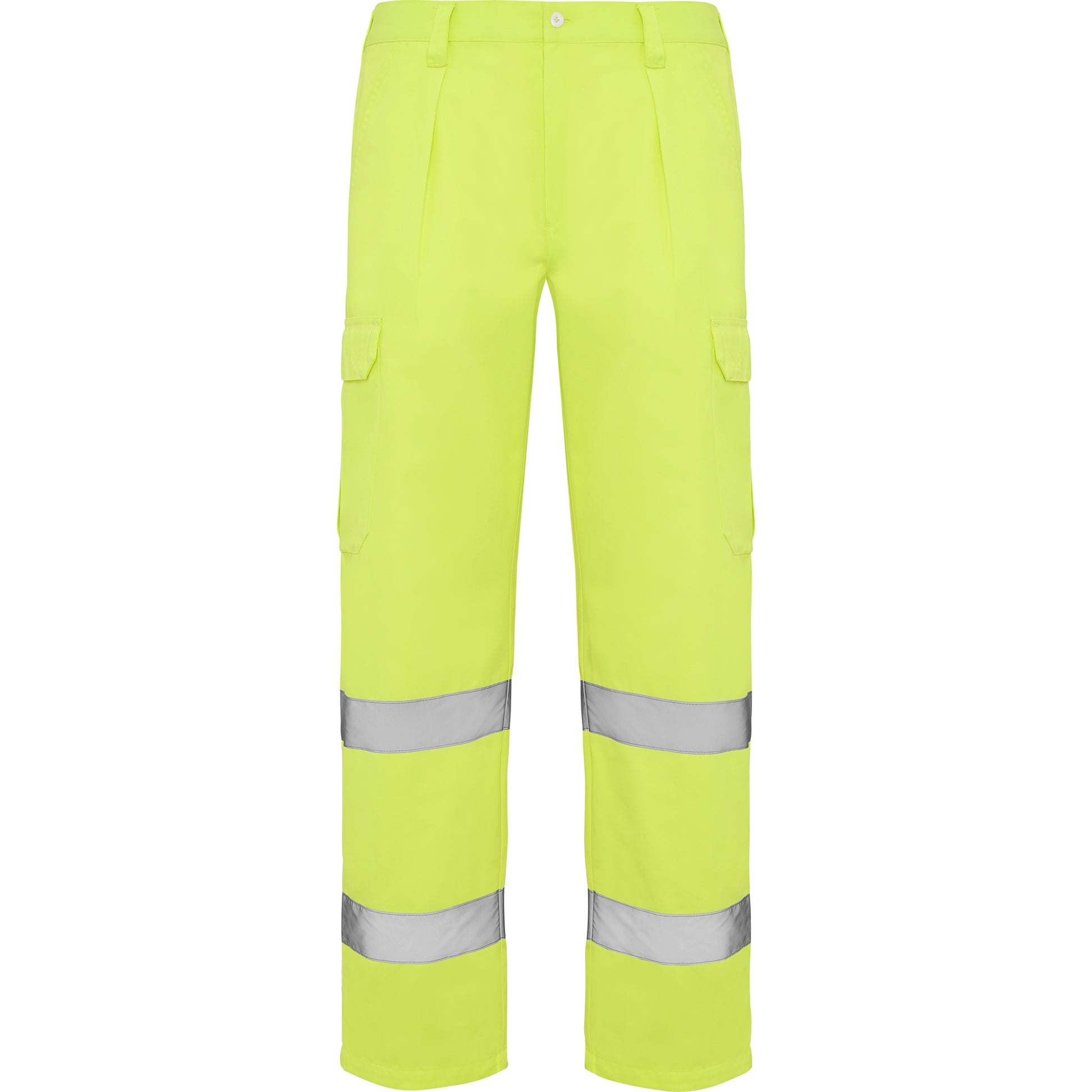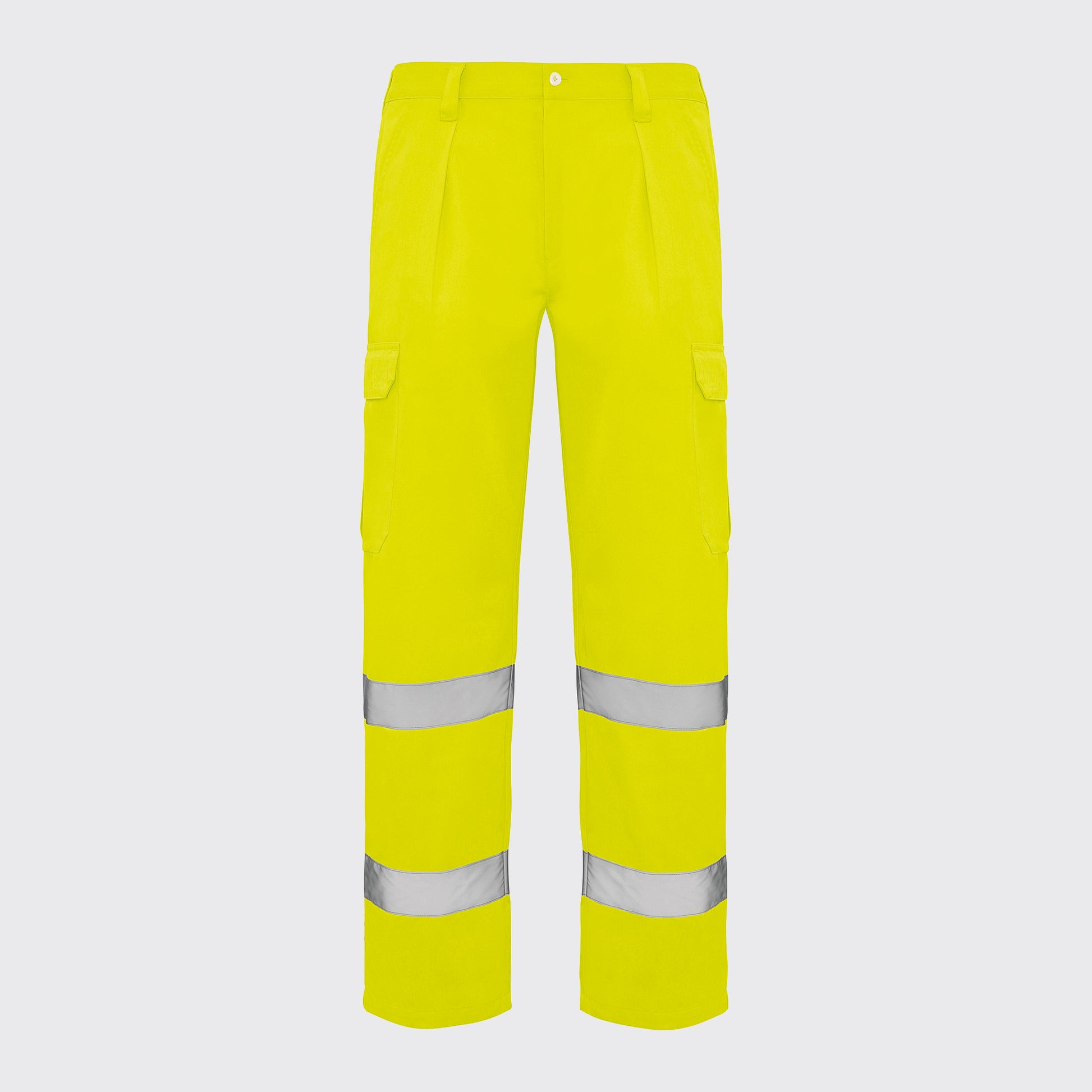 Pantalón largo de alta visibilidad amarillo flúor.