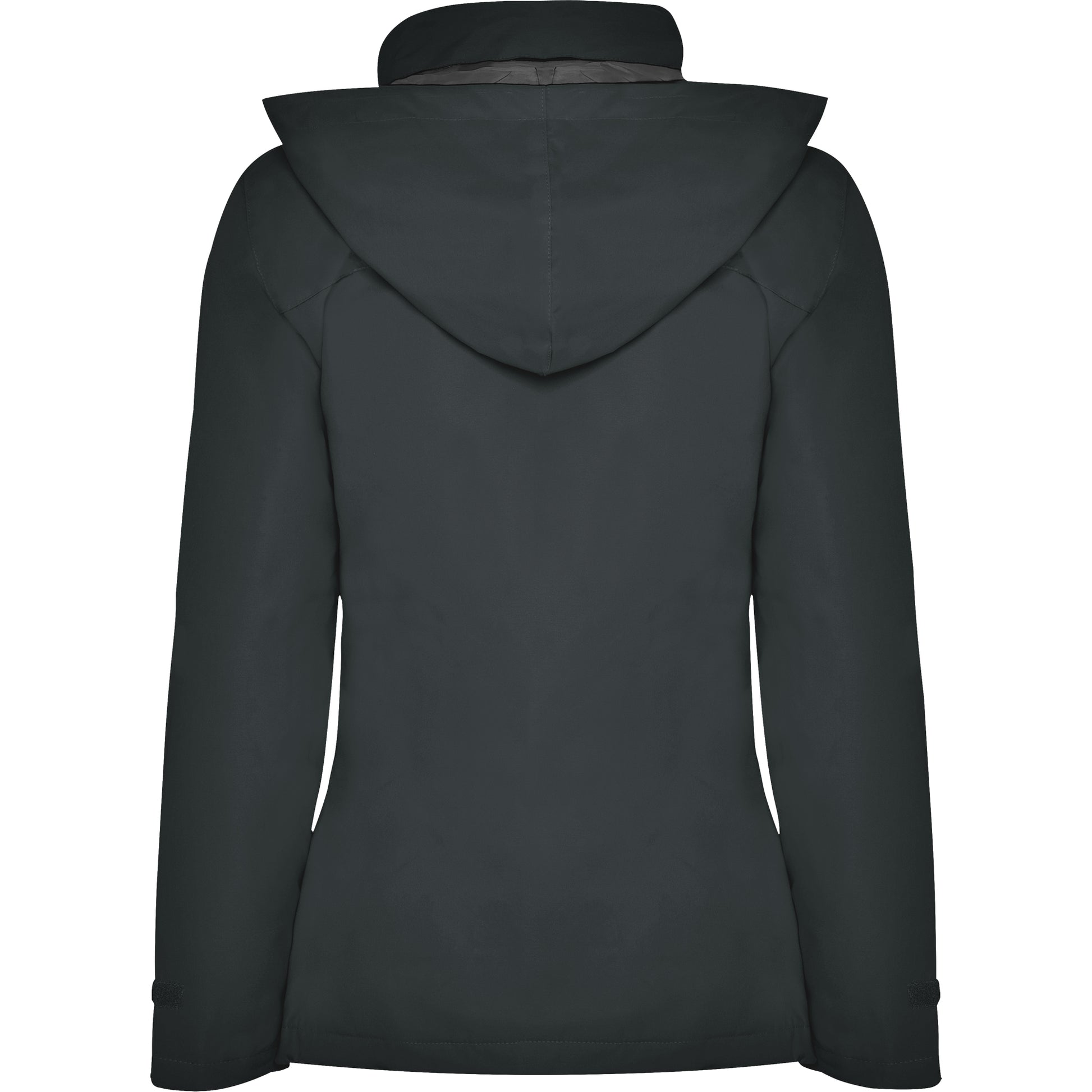1.- Capucha plegada y extraible en cuello con cierre velcro.