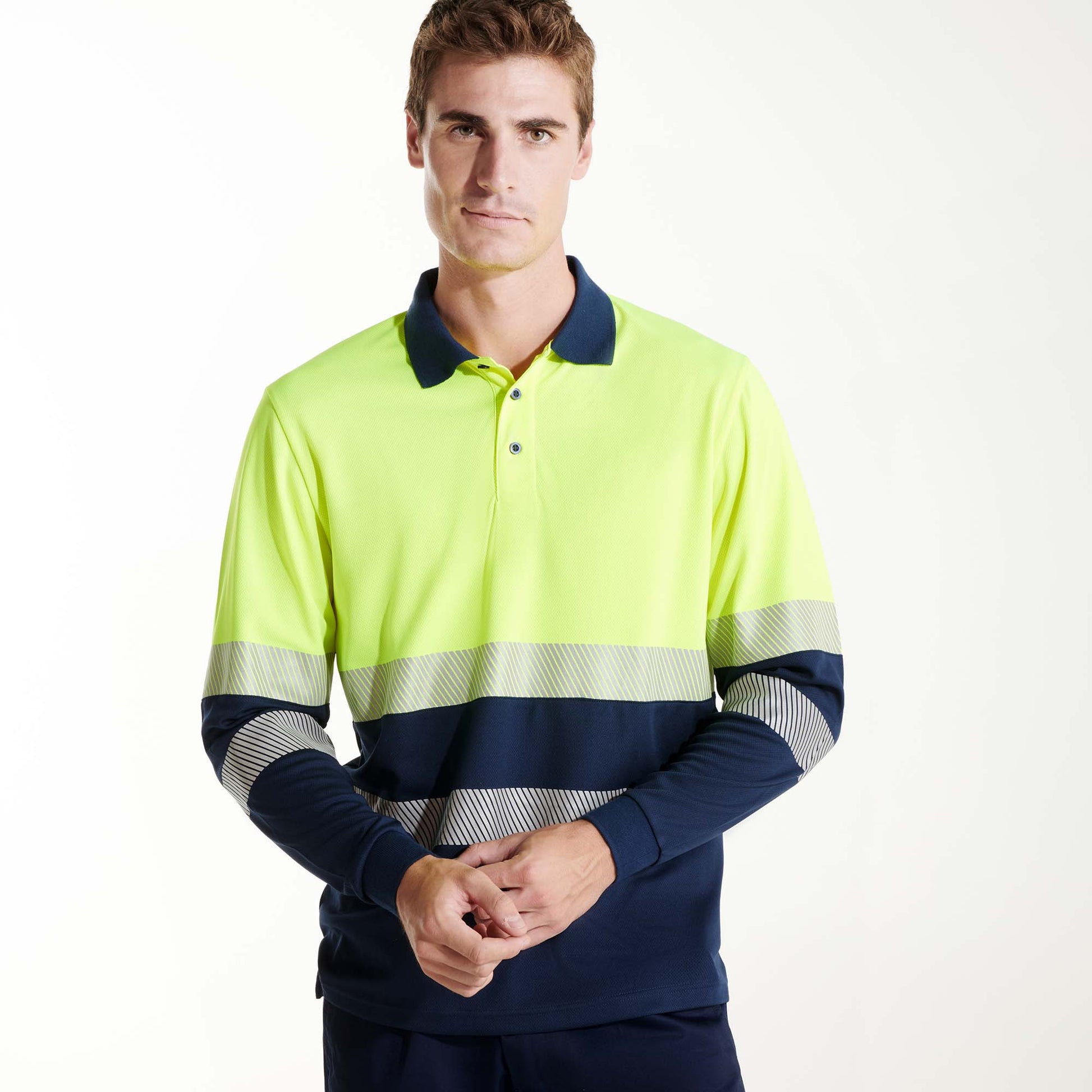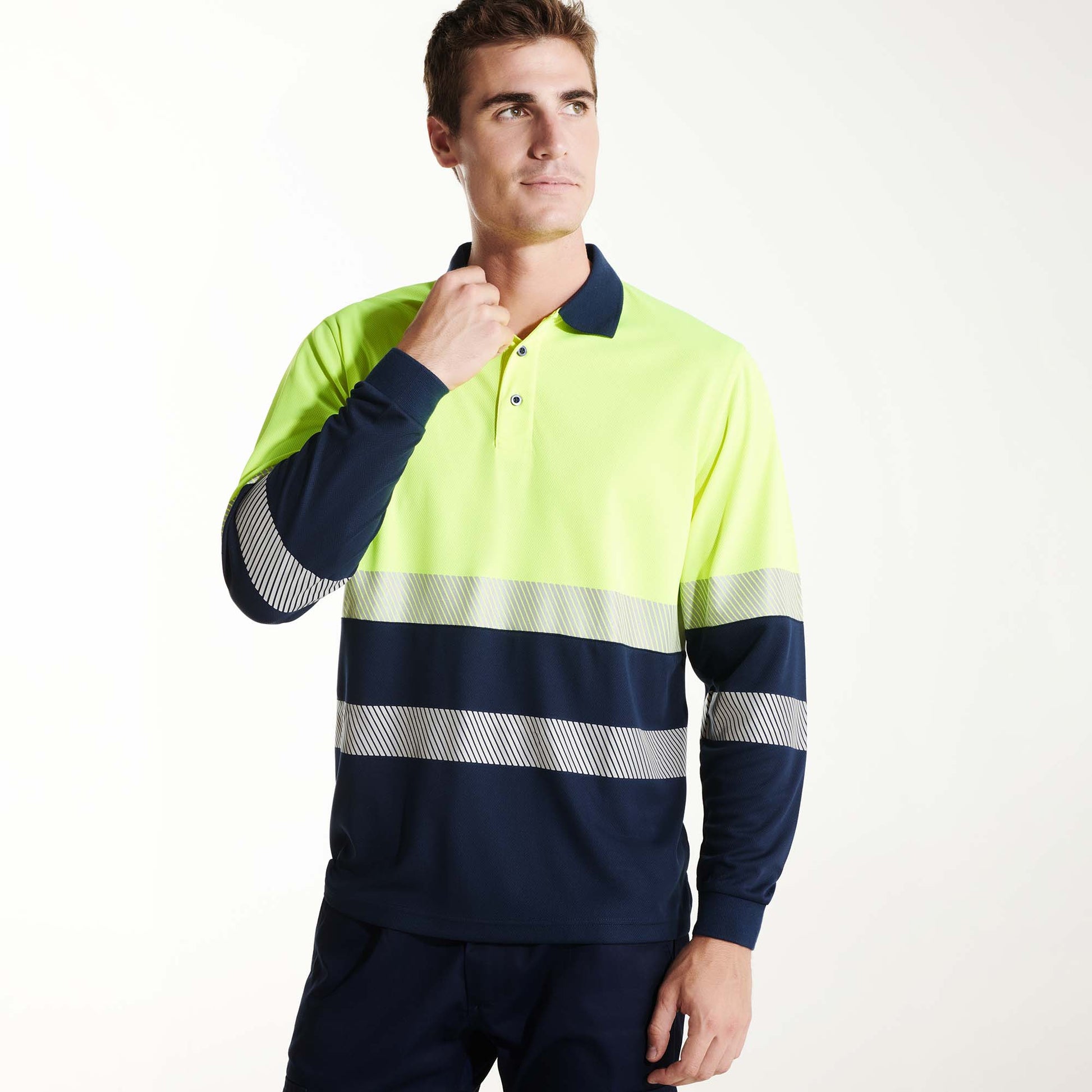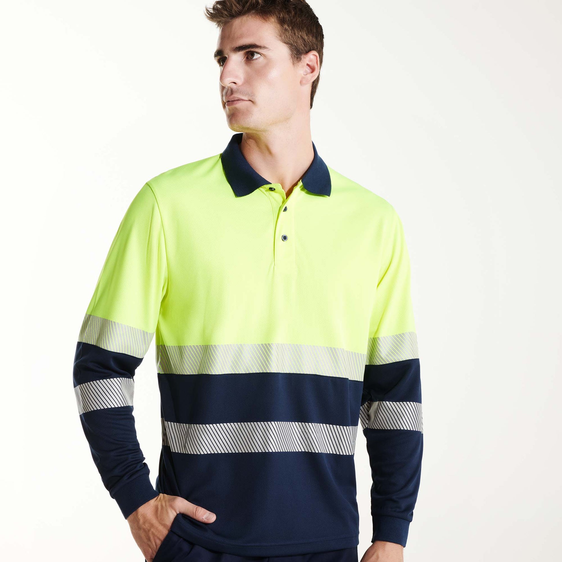 Polo técnico de alta visibilidad en manga larga.