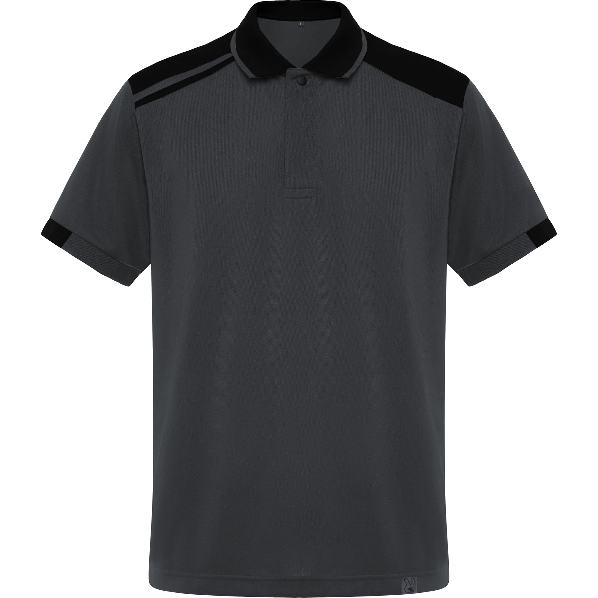 Polo de manga corta con colores combinados. Cuello y mitad de la manga en ribete de canalé 1x1. Tapeta con 2 botones. Cubre costuras reforzado en cuello. Aperturas laterales en el bajo. Piezas de hombros y detalles a contraste. Bolsillo opcional a contraste.