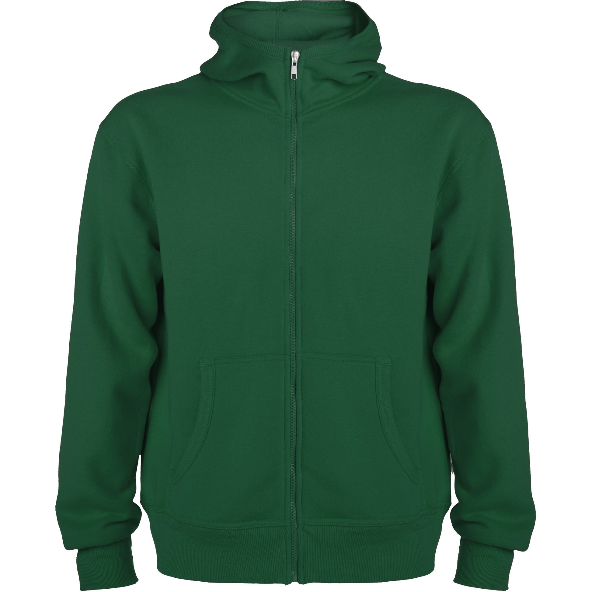Sudadera con capucha, cuello alto y cremallera completa. Detalle canalé en contorno capucha y bolsillos. Bolsillo estilo canguro. Punto canalé 2x2 en puños y cintura.