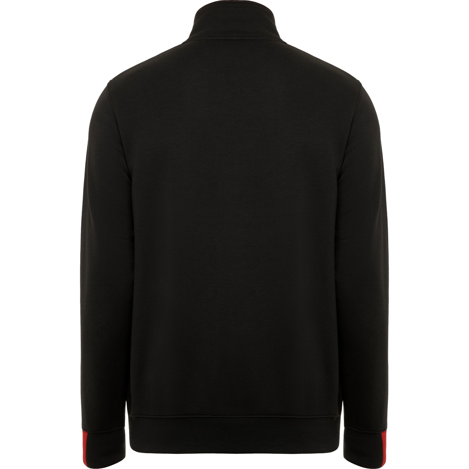 Sudadera en colores combinados de media cremallera y cuello alto. Mitad del puño y bajo en punto canalé 1x1. Cubre costuras reforzado en el interior del cuello. Piezas de hombros y detalles a contraste.
